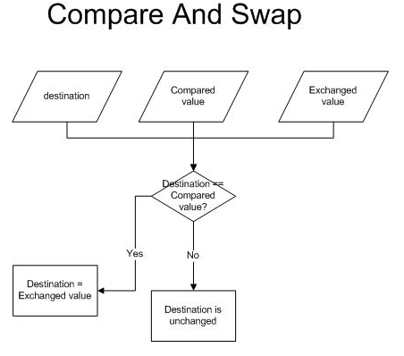 현재 쓰레드에 저장된 값과 메인 메모리에 저장된 값을 비교 → 일치시 새로운 값으로 교체, 불일치시 실패하고 재시도
