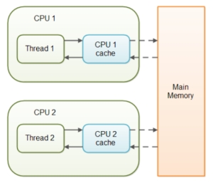 멀티쓰레드 어플리케이션에서 volatile변수 사용 안할때 → Main Memory에서 읽은 변수 값을 CPU Cache에 저장