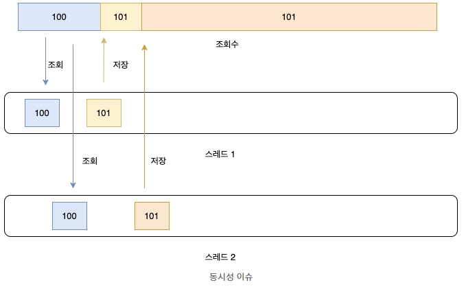 이유 : 조회수를 증가시키는 로직이 두 번의 동작으로 이루어지는데 동시에 여러 스레드가 접근하여 첫 번째 동작할 때의 자원과 두 번째 동작할 때의 자원 상태가 변하기 때문