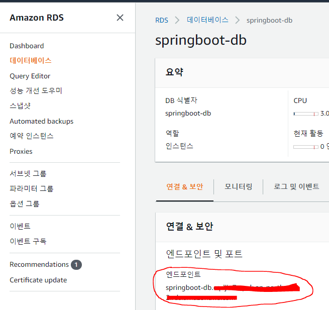 이제 프로젝트에 MySQL을 연동할건데 연결을 위해서는 DB의 엔드포인트가 필요하다.