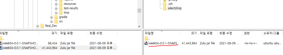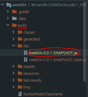 ~~~.jar파일이 있다. 이게 빌드된 배포파일이다. EC2에 올려서 실행시키면 서버가 돌아가는 것이다.