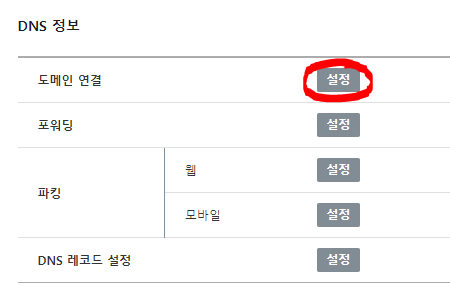 다음으로 DNS정보에서 도메인 연결 설정으로 들어간다.