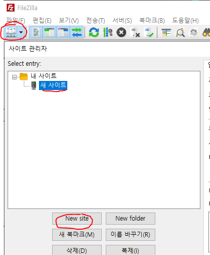 맨 위 표시된 버튼을 눌르면 사이트관리자가 뜬다.