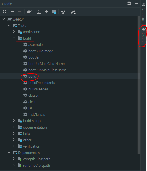 오른쪽 구석에 Gradle을 눌러주고(본인 프로젝트는 Gradle로 했음) build 밑에 톱니바퀴모양 build를 더블클릭해주면 빌드가 시작된다.