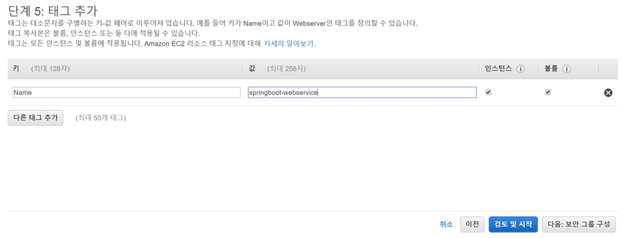 인스턴스 유형 선택(t2.micro)![]()