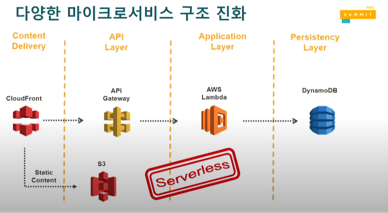 ๋ง์ดํฌ๋ก์๋น์ค ์ํคํ ์ฒ๋ ์์ ๋กญ๊ฒ ๋ง๋ค ์ ์๋ค. EC2๋ฅผ ์ด์ฉํด์ ์๋ฒ์ ์ฌ๋ฆฐ๋ค๊ฑฐ๋, ECS container๋ฅผ ์ด์ฉํด Docker์ฒ๋ผ ์ฌ๋ฆฌ๊ฑฐ๋, Lambda๋ฅผ ์ด์ฉํด์ AWS์ ๋ค์ํ ์๋น์คAPI๋ฅผ ์ฌ์ฉํ๊ฑฐ๋, LambdaBlueprints๋ฅผ ์ด์ฉํด์ ๋ค์ํ ์ธ๋ถ ์๋น์ค API๋ฅผ ์ด์ฉํด์ ๊ฐ๋ฐํ ์ ์๋ค.